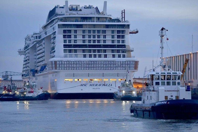 Nous assistons depuis notre table de petit déjeuner aux manœuvres d’arrivée à Livourne.
